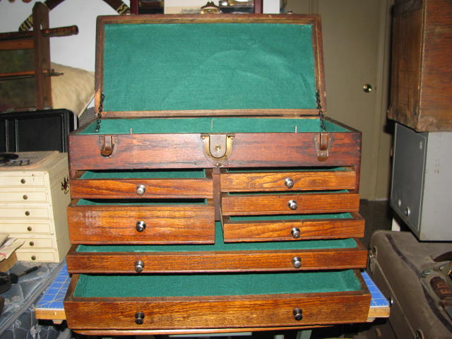 Here are two that I found at flea markets within the past year: The machinist's tool chest was manufactured by Star Chests of Chicago. Judging by the hardware, it was made anytime between the 1930's to the 50's. I haven't found any information on the maker, but it is of decent quality and all that was required to get it to the current condition was an hour with some polish, a rag and a vacuum cleaner. Lots of cat hair.... The J.H.Williams box measures 20.5" x 6.5" x 3.5" and was made when American manufacturers put real steel in their products ... it's 18 gauge and weighs about 5 lbs. Sadly, the socket set was long gone when I found the box.