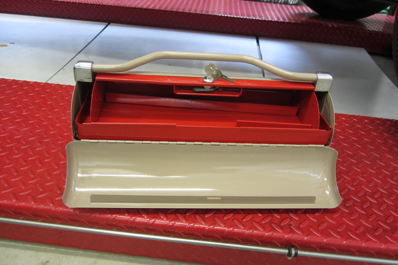 I like old stuff including tools. Every car has it own tool box....old tool box. I have my grandfathers old Kennedy machinist rollaway box that I started with, a no name small box in one car, a Kennedy small hand box in another and I just found an old Kennedy 1018 Cantilever Tool Box. Lots of my hand tools at home and at work are 20's-60's various brands, they feel better and last longer. Oh, and a un named brand bottom cabinet I got for my body tools. Anyone know what the blue handled box is?
