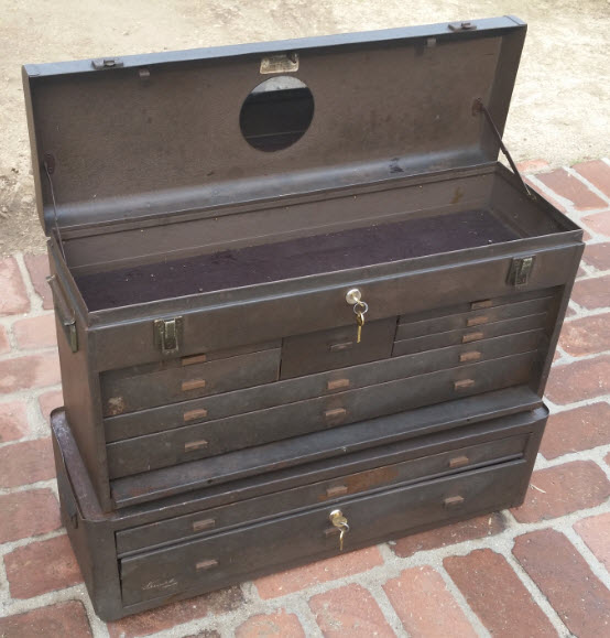 I picked this old Kennedy set up at Pomona this month for $65. Why do many machinist tool boxes have mirrors on the lids? Do they like to look at themselves or is it to see if they get something in their eye? Kennedy-tool-boxes-65bux.jpg