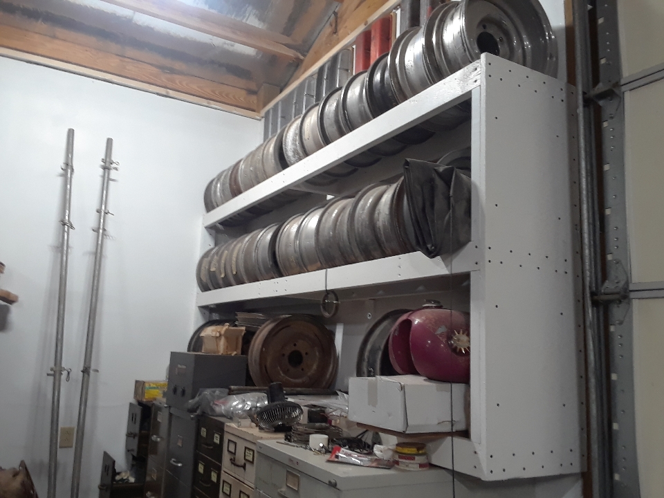 Sort of in the realm of home made stuff is the wheel racks I built over one or the rows of file cabinets: