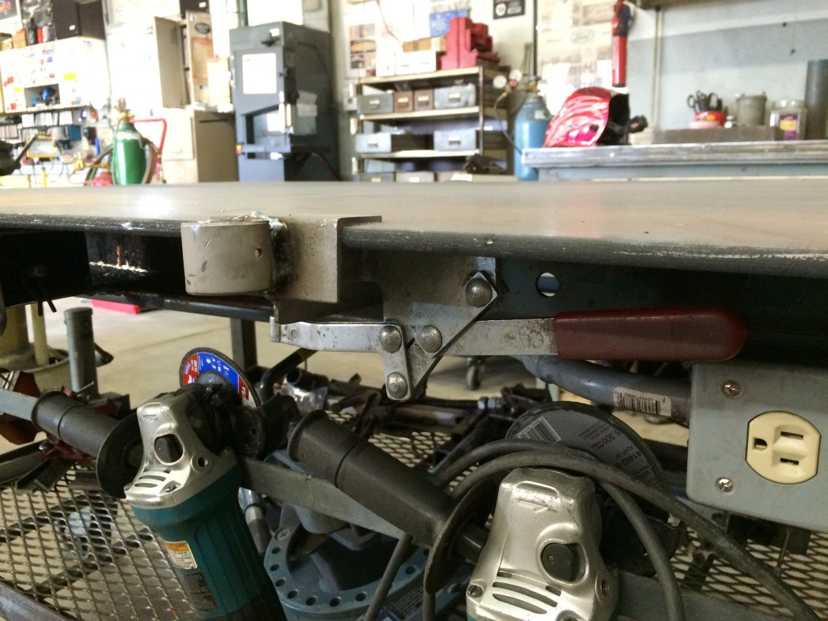 I like that welding table. I don't know why I didn't think if using a tongue jack like that. The perforated floor is a great idea too.