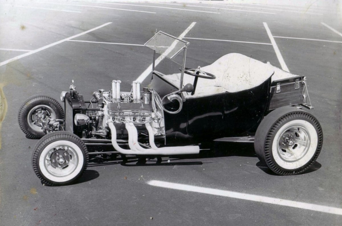 My problem has always been getting enough radiator core as one of the things on this car is the body is sectioned, (bottom cut off) about 2 1/2"), which is what makes it look so low compared to other slammed buckets. I've always had heat problems. My understanding is the pictured one does too. It should be noted this one is a four speed car so the whole thing about no room for a clutch pedal is dispelled. This also helps with leg room as the stick box is smaller in diameter than the typical automatic. In addition I will note the car has an approximately 92" wheelbase, as I scaled it off photos. I know this makes me feel like Tommy Ivo sneaking into Norms garage but you'd be amazed at what is available on FB!