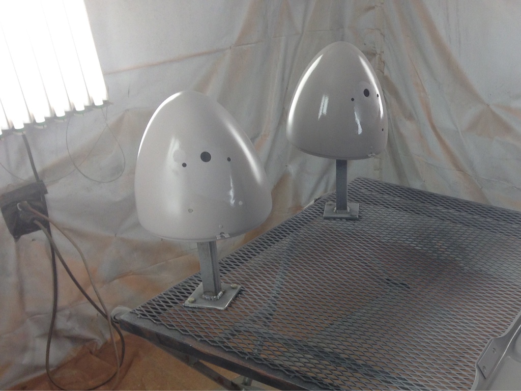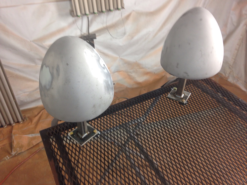 I pick up cheap engine stands and made a couple to my own specs to use for painting. Here's one of my deck lid and a couple of my fenders on them. I used some scraps of Kindorf I scrounged up for the mounting arms. The work well for working on them, painting & sandblasting............................