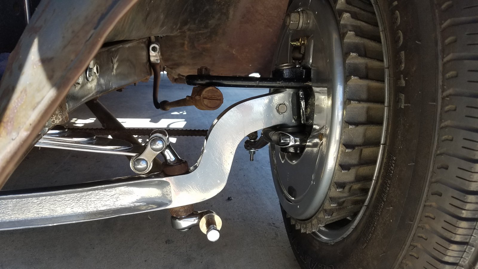 After better measuring I have determined this is a 5" drop axle. It is going to be too low. I am also not finding anything to get the tie rod below the wishbone. I think I will buy a 4" drop from Roadster Supply, the 70508 48" king pin to kingpin and 36 1/2" perch centers. I'm tired of fighting it. Super nice OG dropped '32 axle that would be great in a fenderless roadster but it's too low for me plus the A crossmember drops me another inch. Think this axle will be for sale.