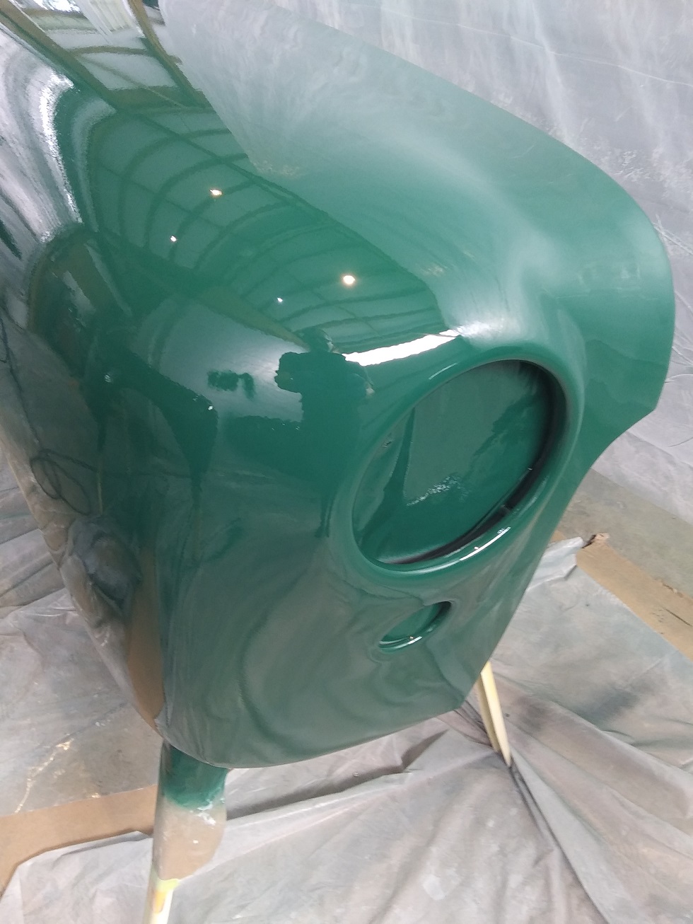 Thank you! The paint is Summit Racing single stage urethane, British Racing Green color. Being a novice painter and going for a traditional look, I felt more confident with non-metallic single stage paint.