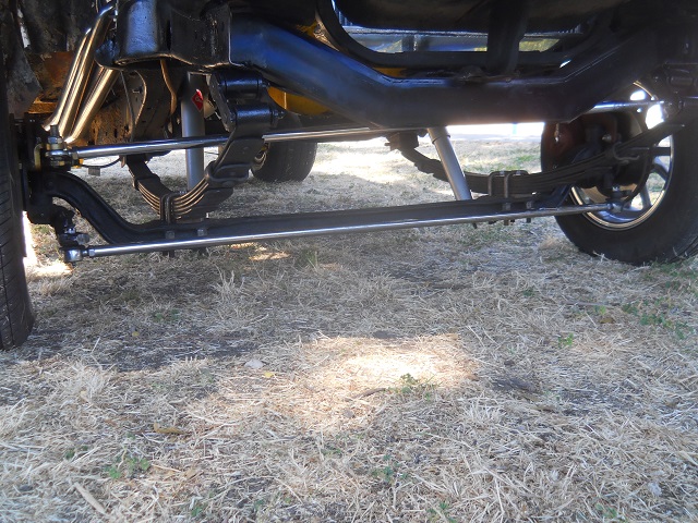 I had the tie rod like yours with the wrong “Ackerman” and couldn’t drive on the street worth a damn. I left the steering rod in front like yours an finally swapped the tie rod arms facing to the rear and it was perfect. I had the tie rod right above the springs by using spacers. It never touched the frame with any kind of driving.