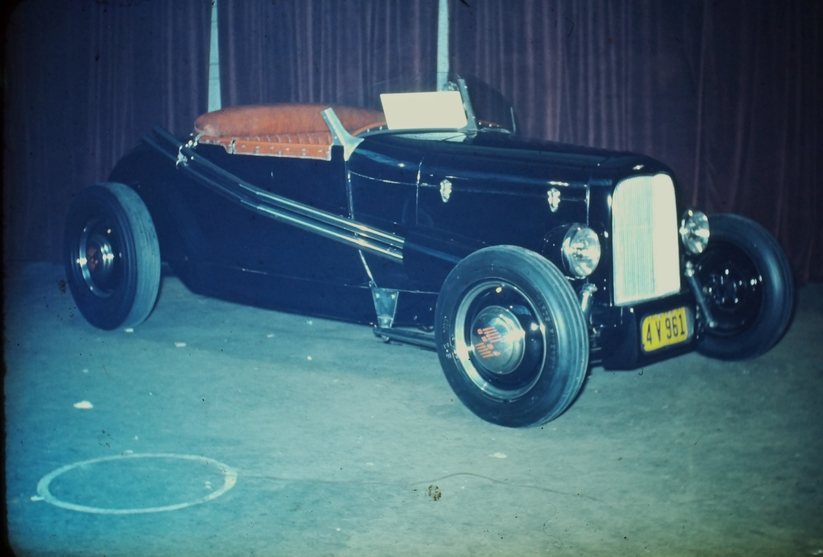 17. Jack Detners owned it at time of 1st Hot Rod Exposition. It was built by the Granger bros prewar, Dick Ford owned it pre war then it was later owned by Johnny McCoy during the war. Dick Ford purchased it back and later sold to Jack Detners, car is a narrowed 1927 Chev roadster powered by a flathead V8. Some of best pics are in Albert Drakes "HOT RODDER! From Lakes To Street".