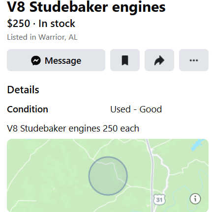 Not a car, but a real deal for a guy wanting a different period correct engine. I've kicked myself a couple of times for letting my good running 289 go.