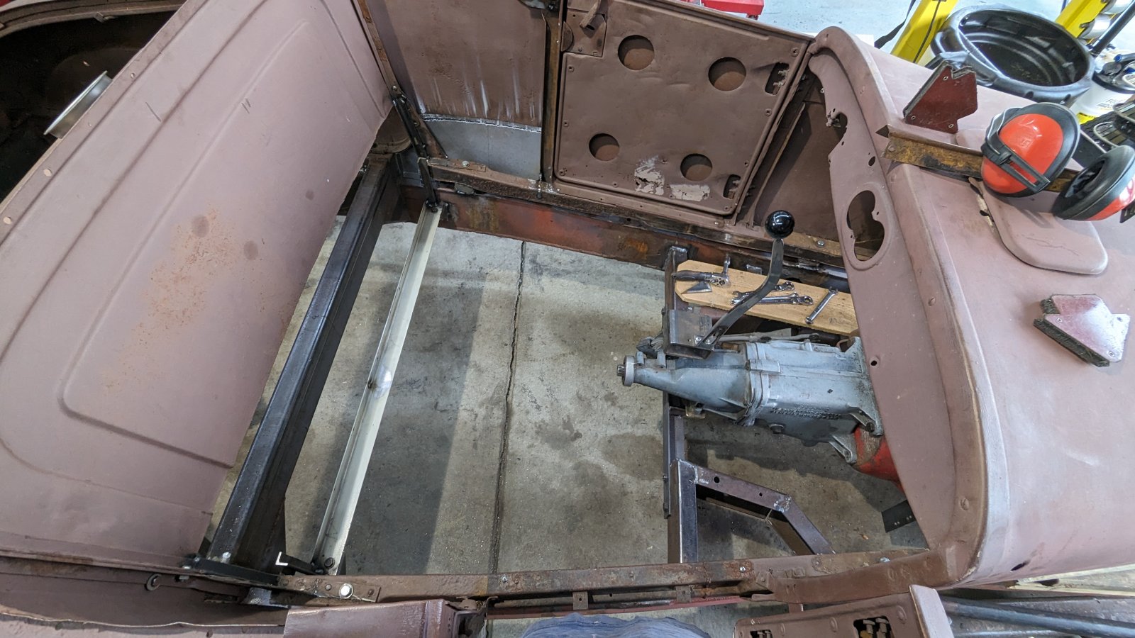 He sold me the rear half, with doors, cheap ($400) It had been soda blasted and primered. My wife and I drove North an hour in my '55 F100, got offers on the way back.