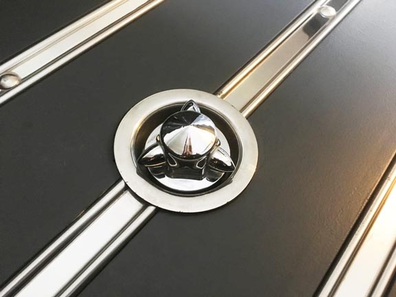 This reminded me off using a NOS piece of 1966 VW running board stainless on the Ranch Wagon, I cut 3" of ether end and made a cap for the B pillar door post pulls. HRP