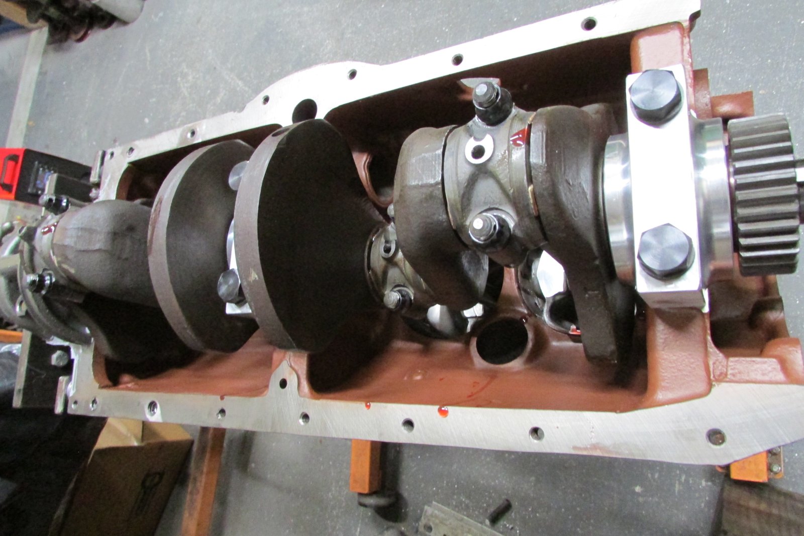 This is a old style build, scrounged pistons from 283 Chevy, modified "B" rods etc.