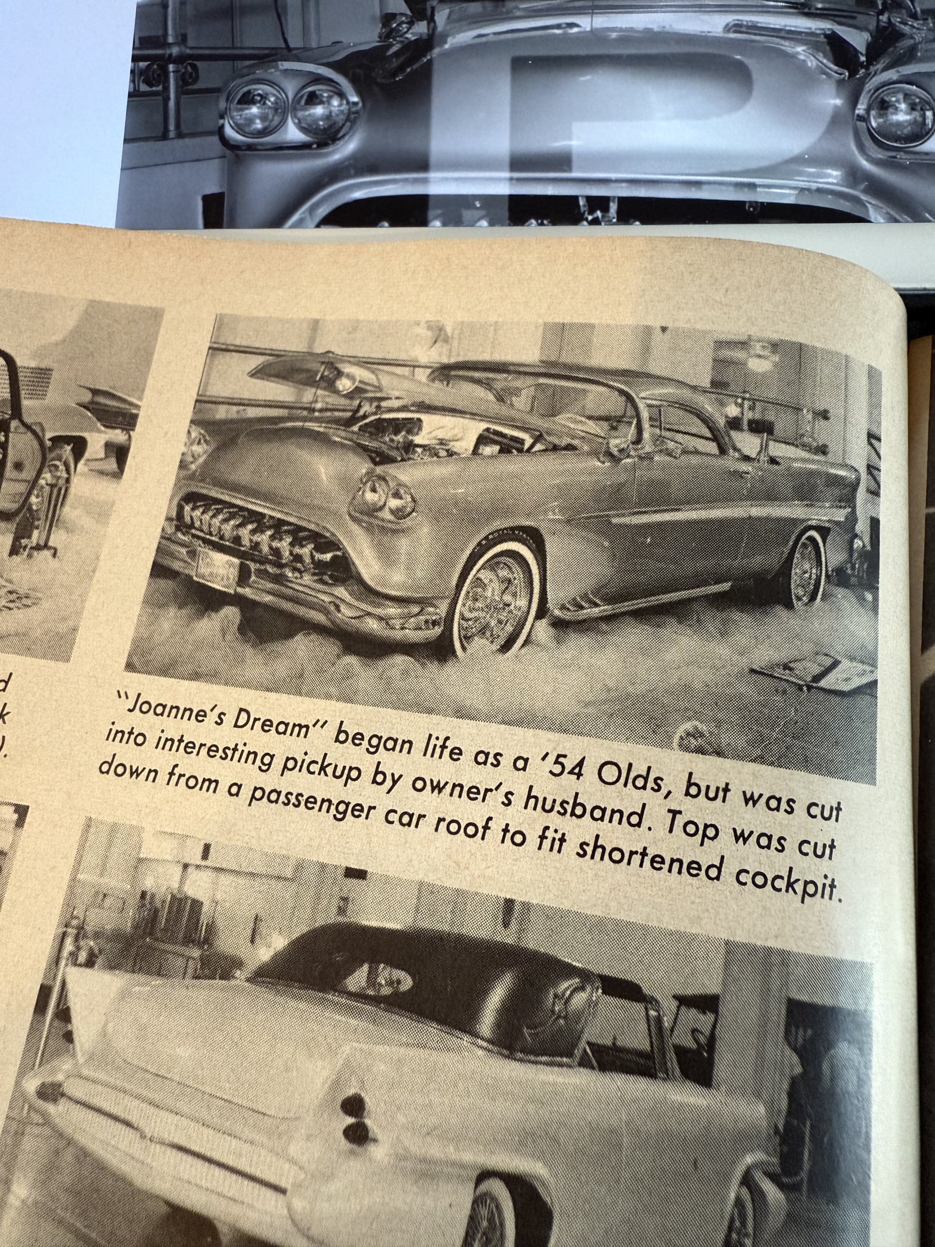 Hello, I was trying to draw an El Camino version of my brother’s 1951 Olds sedan and the art work looked like a whirlwind hit it many times over. It was not the easiest thing to do. So, it sits in a folder "waaay" back deep in the files. Perhaps, I will get it out one day and see what is what in that art works department… But, in my search for something that may look like an Oldsmobile El Camino, I saw this one. But the first thing I noticed it the original owner took the stock roof line and shortened and lowered it to the body/bed. In doing so, he had the door to deal with and so the top was cut to fit. From the side standing a full car distance away, it looks odd. The proportions of the top somehow got out of whack. More of the Olds top could have been used to create a better proportion top and either make a larger door to utilize the curved top or add a roll down window like the Corvette. At least, it would give a well proportioned style and top to go with the long body. Jnaki The custom is a good idea and with a longer roof. In 1960, it was certainly a different custom car idea. A longer roof line gives it a better proportion to fit the long body. If the idea of a longer door is a problem, then option #2… Window up and second photo, window down with the proportioned longer top. YRMV