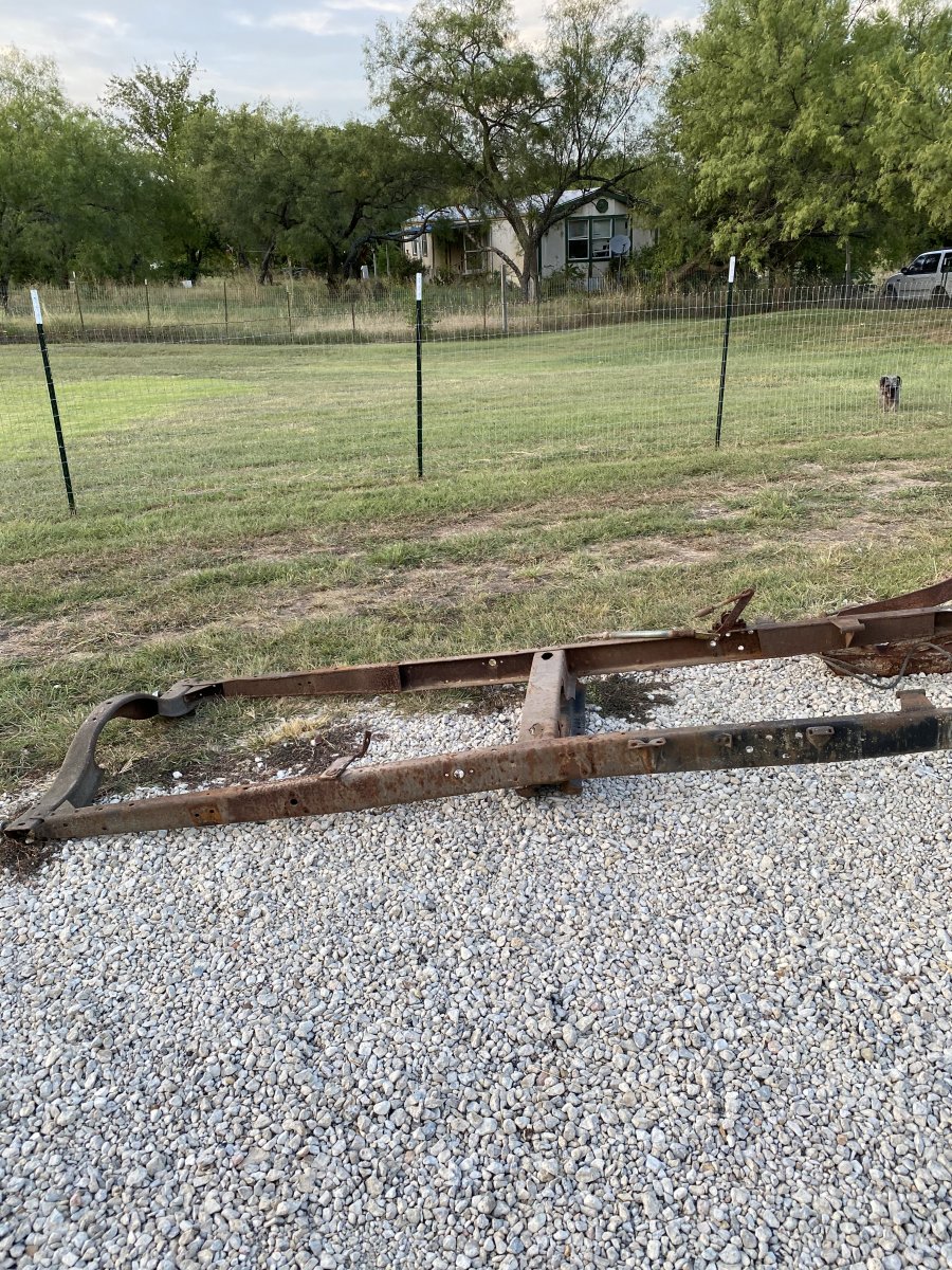 He says that this chassis had been converted to a trailer for farm use and the horns were cut off in that application. They had attached the trailer hitch to the crossmember, hence the patch. That is interesting but it makes it that much more of a pain in the ass. With that in mind, I am leaning toward the cheaper set. I think for the frame, rear end, front end, front & rear suspension, brakes, and wheels that is a fair price when considering the prices of all of those parts individually. It will help me a lot to gain the experience of actually putting it together, too.