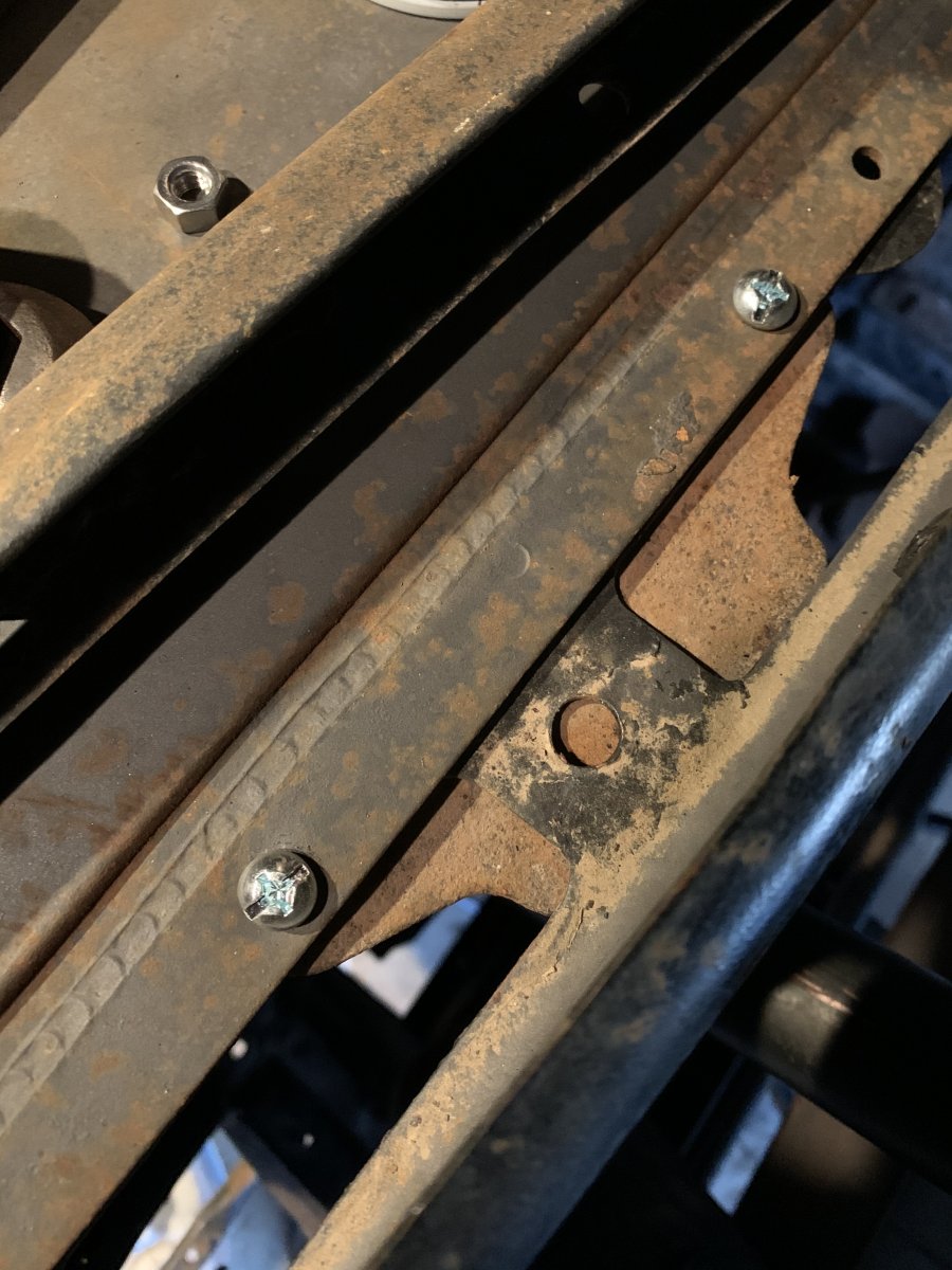 I don’t like how the steering box behaves when the wheel is turned while unsupported, so I went ahead and fixed it up with some ugly machine screws I had sitting around. I will replace these with pretty screws when I have the money for such frivolous things. Two questions: The center hole on the column totally does not line up with anything on the dash, what gives with that? Second, is that it? The column just chills there with a half inch gap above it? I feel like I’m missing something but I can’t find anything in the restorer books.