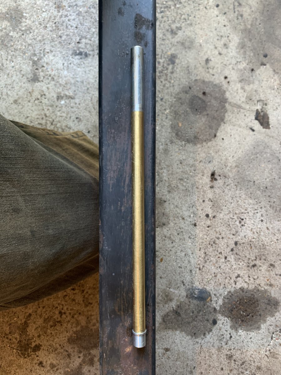 The actual throw is so short that it’s impossible to take a picture that really shows the difference between highest and lowest points. The lines in the second pic were drawn above the rod at its highest & lowest. Here is the pushrod by itself.