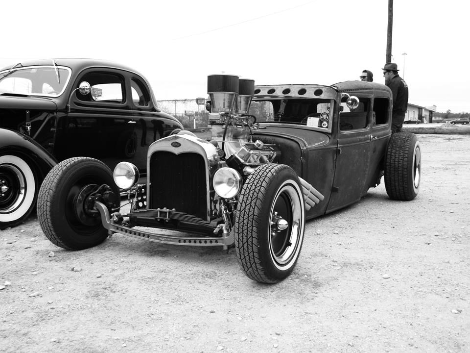 John Gaddis 1940 Ford coupe with Amos "Mac" MacCreery's 1931 Roadster.