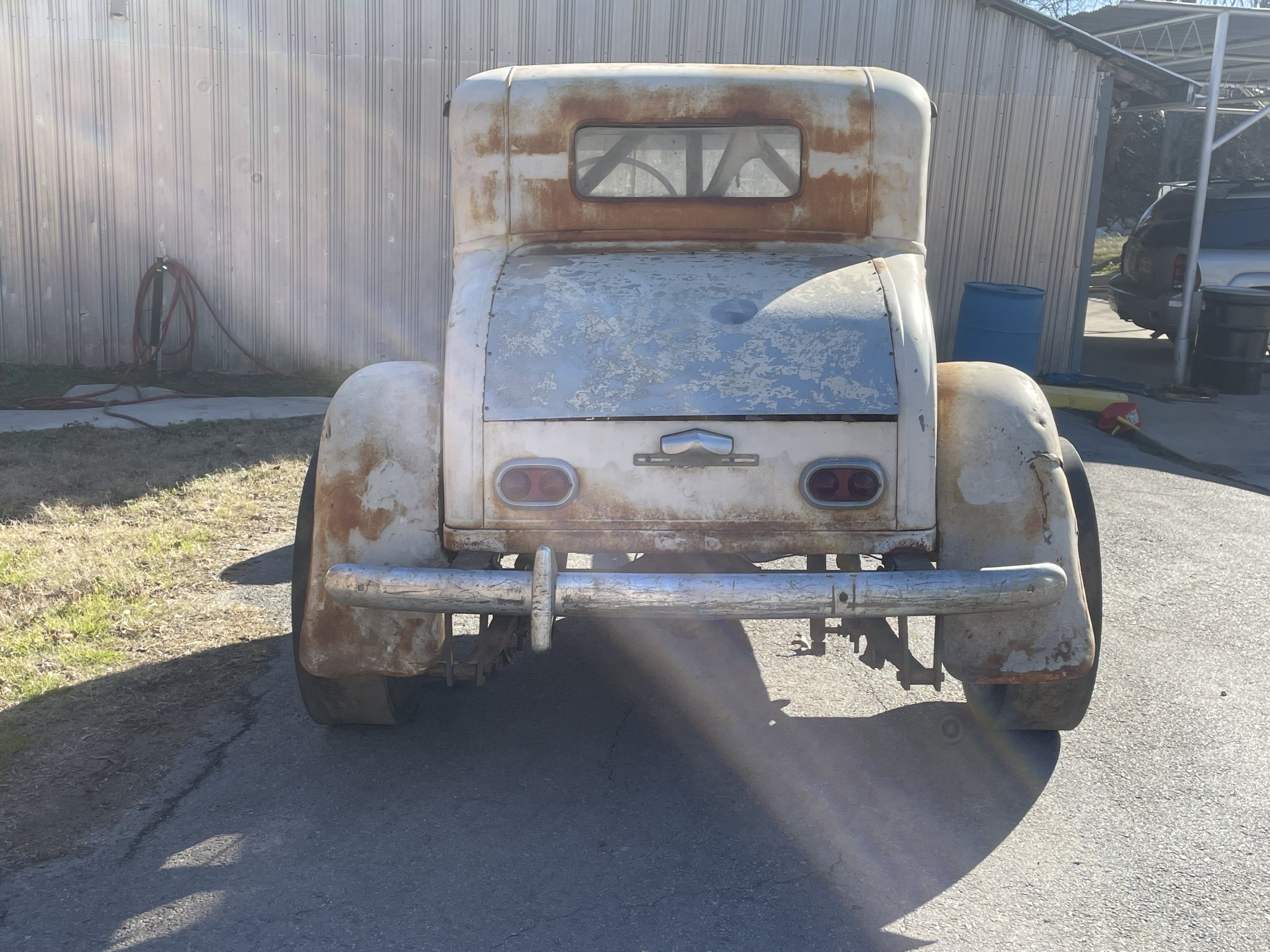 Had a little downtime today so Saul and I hammered out some little things on the car. I bought a drum sander and was eager to try it out, so among other things, we stripped & primed the first panel. The first order of business was removing these splash guards. It turned out that Sid welded the body to the frame more solidly than we first understood, so we are pretty limited on how high we can lift the body. It also turned out that the feet of the roll cage coincided with the rear edges of the splash guards, so like anyone would have done, Sid just welded everything together, which, being unable to lift the body very high, required some careful work with a chisel to cut the splash guards out of the weld blob. Some cars don't look right with fenders. Some don't look right without them. This car is definitely in the latter category... I had a peek in the fuel tank. The sediment screen spun out easy and... Well, if that isn't one of the cleanest Model A gas tanks I've ever seen... just a little crud from the disintegrated gasket. It was around that time we took the AA out for a Harbor Freight run, where we picked up the drum sander and an electric die grinder & stopped at Waffle House on the way back. Back at the shop, we stripped the tail pan just to see how the drum sander worked and then shot primer on it. Over the next few days we'll try to get the whole car primed. I also started stripping the frame with the die grinder but forgot to get pictures and didn't end up getting any paint on it, but I got some POR15 chassis black for that, which the whole undercarriage will get before we even start taking anything apart. Rust never sleeps, so I want to get it under control before it gets any worse. My workshop is supposed to be going up March 10.
