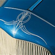 I like pinstriping with just two colors only!!! After that the artwork starts getting to busy and becomes the focal point of the car instead of the car being the focal point. It's amassing to me when people walk up to a car and only comment about the pinstriping and not how beautiful the car is. Pinstriping should accent a beautiful car!!! Sometimes knowing when to stop is the most important part of pinstriping. These comments exclude the low rider guy's who believe in pinstriping every single spot on their cars. Jimbo