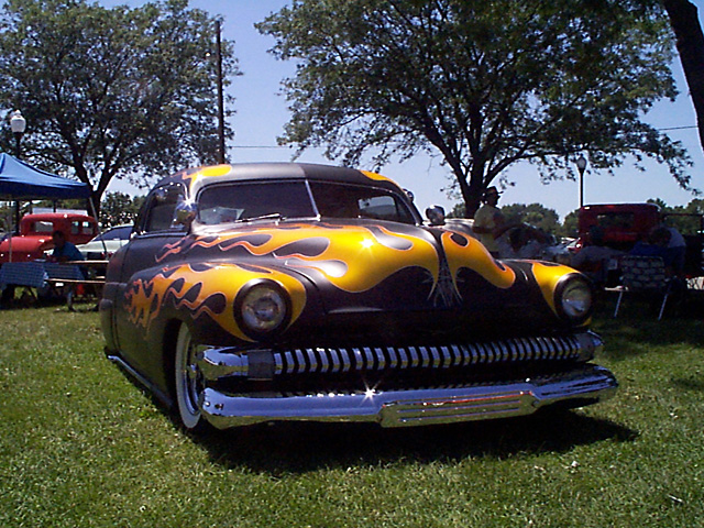 To bad the doors are open, It breaks up the nice smooth lines of this custom. Thanks for sharing the pics. I like the grille treatment. Usually I see this effect in the shape of a heart surrounding the grille.