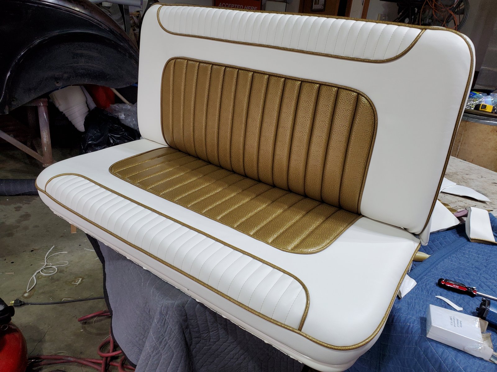 That white and gold seat is absolutely awesome. Really impressive work man.