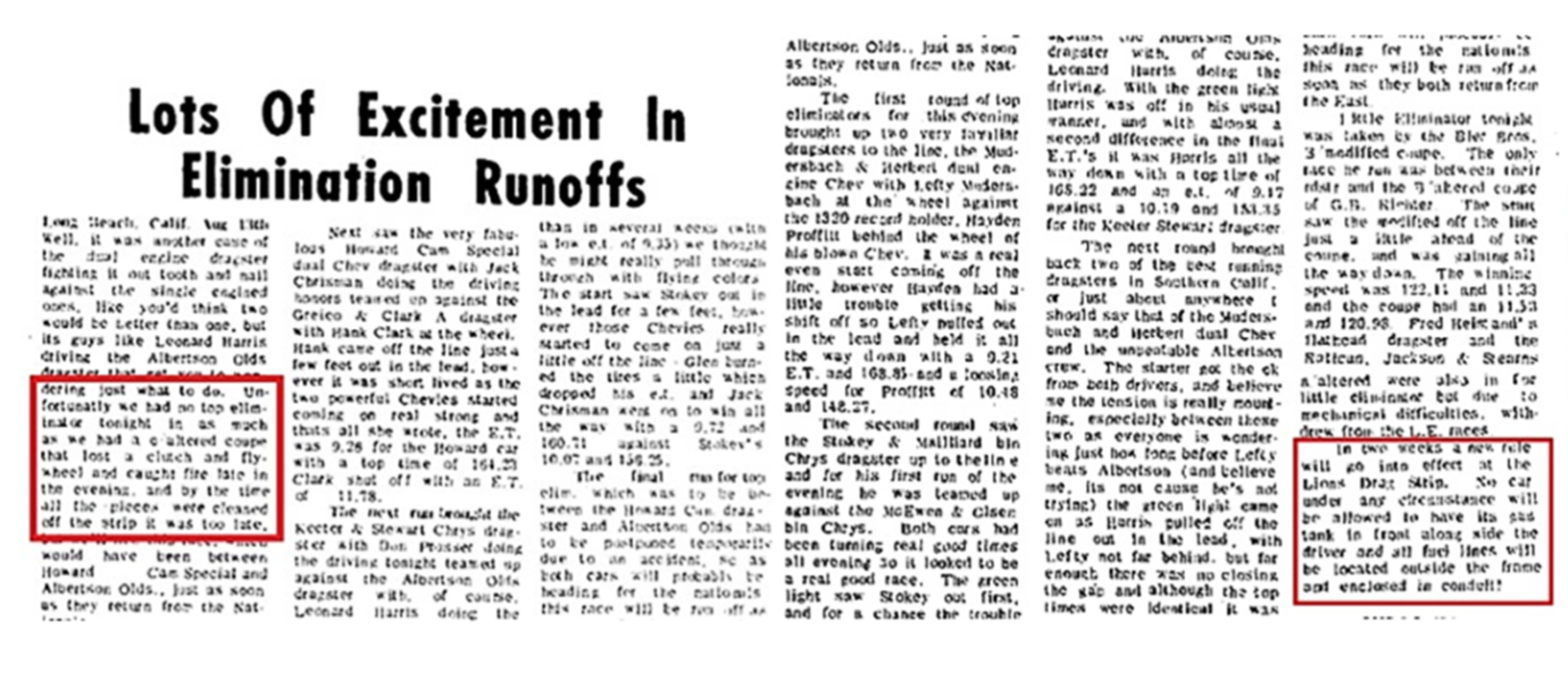 This photo is a great example of what the tech committee in 1960 wanted all gas coupes/sedans to do. As a matte of fact, they made all racers, altered, roadsters, comp coupes move the interior gas tank to the outside, primarily in front. But, behind the grill was supposed to be where it was intended. Somehow, the rules got mixed up and the moon tanks began to show up outside of the grill, as the inner area was small or the moon tank was too large.