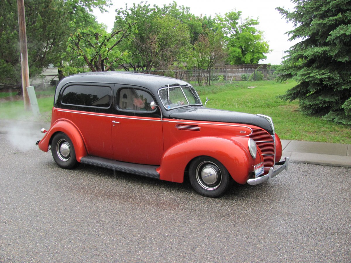 Nice old photo of the sedan delivery and newer conversion. Many times while driving our 40 Ford Sedan Delivery, we wished we had a right side window for better vision. Slow lane driving was the key driving mode for my wife, while I kept my eyes peeled on the tiny circular outside rear view mirror, constantly. The rear door window was virtually useless to see some road vision for us.