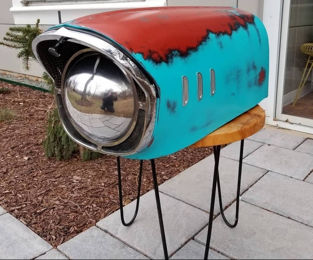 Made this a few years ago. Made the mailbox, stand and rattled can it and "patina" the paint. The numbers and pinstriping was done by a guy named Greg in Berwyn IL box1.jpg box2.jpg box3.jpg box4.jpg