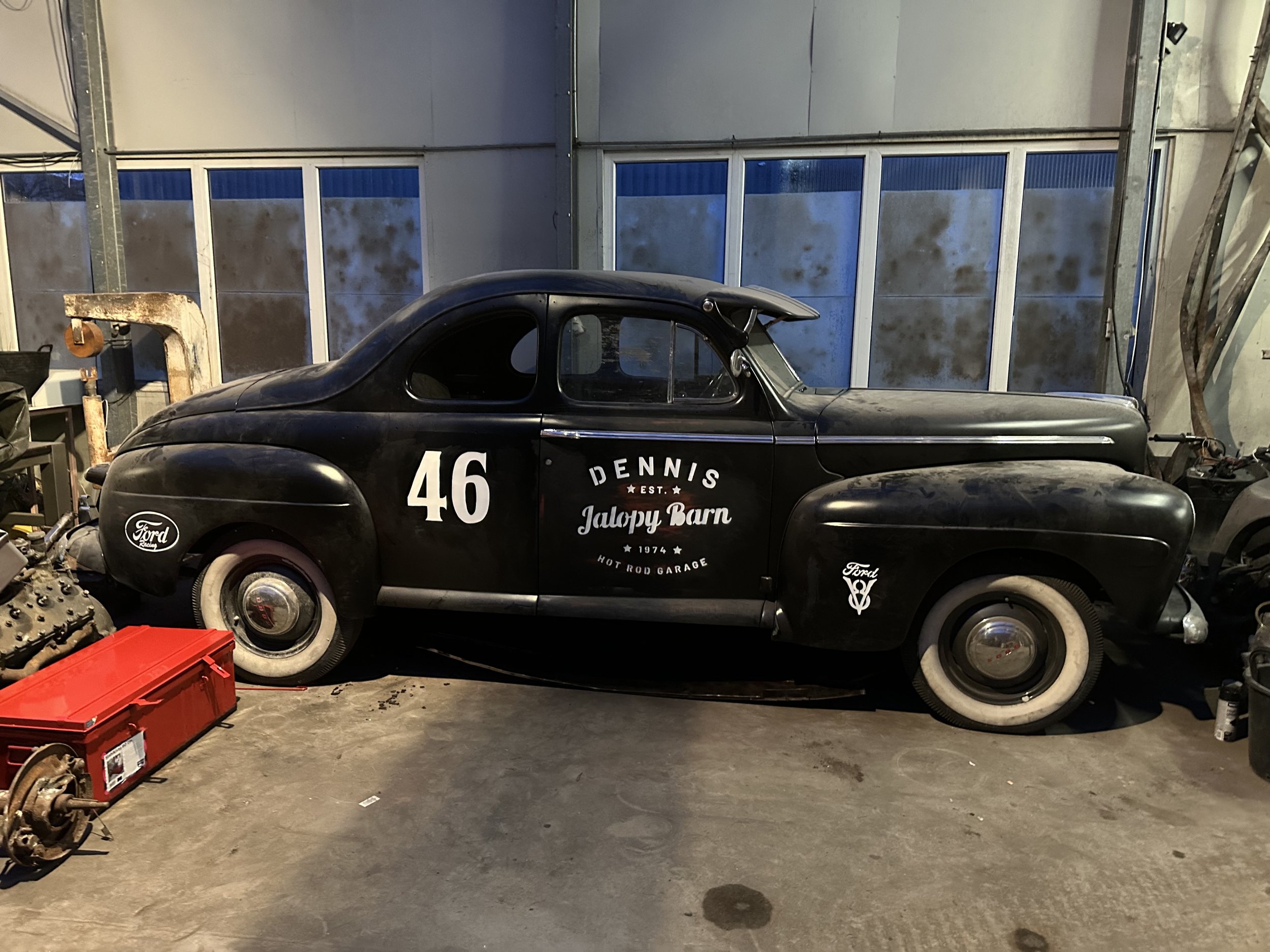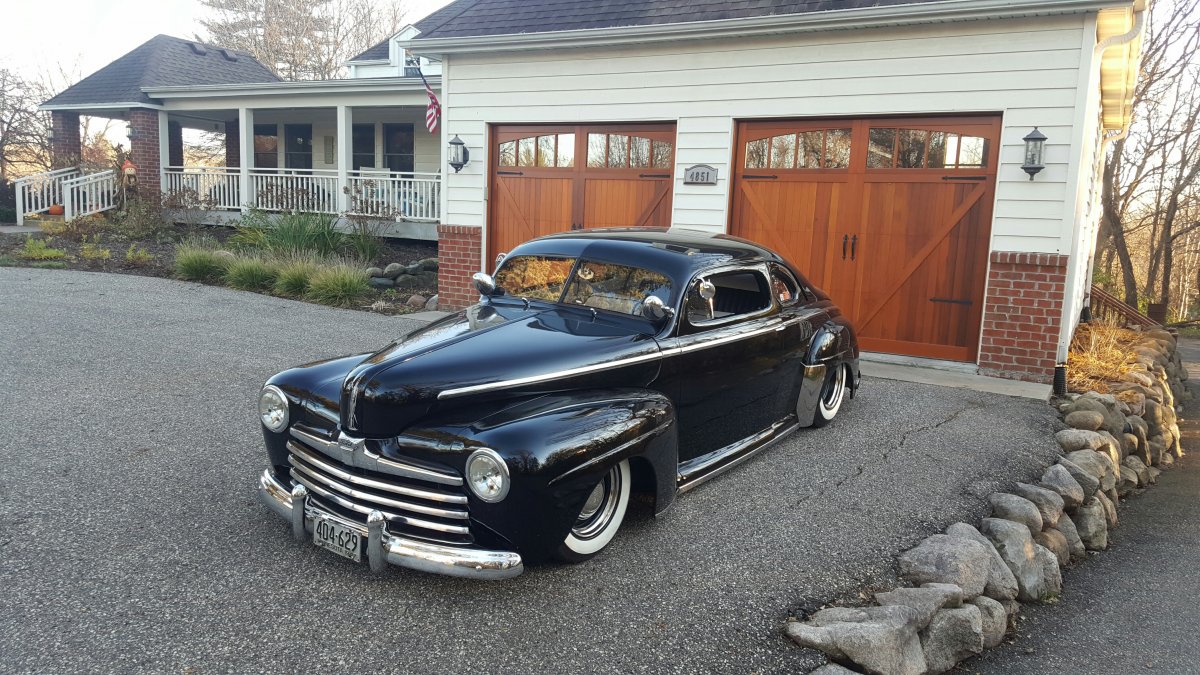 HERES MY BUDDY BUNKY 46 FORD COUPE HE BUILT IT 1988 OUT OF A RUST BUCKET THAT MOST WOULD USE FOR A PARTS CAR:cool: