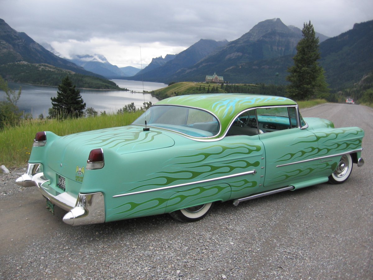 Nice shot Chevbucket...shooting in front of hotels is cool, here's a shot or two of our Cadillacs (my '55 and my brother's '54) waaa-aaa-yy in front of the The Prince of Wales Hotel in Waterton Lakes National Park and Canyon in Alberta, Canada after a trip across Canada via Trans Canada Highway One. Waterton N.P. is a gorgeous area, of course, but a trip across western Canada, in an old car, thru the Canadian Rockies is a treat...!!!