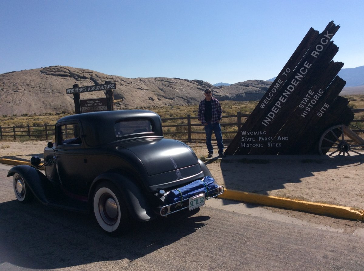 4F5F710A-E63A-43C2-8871-F552EA33A8A1.jpeg Today .... coupe in front of INDEPENDENCE ROCK on the OREGON TRAIL .....