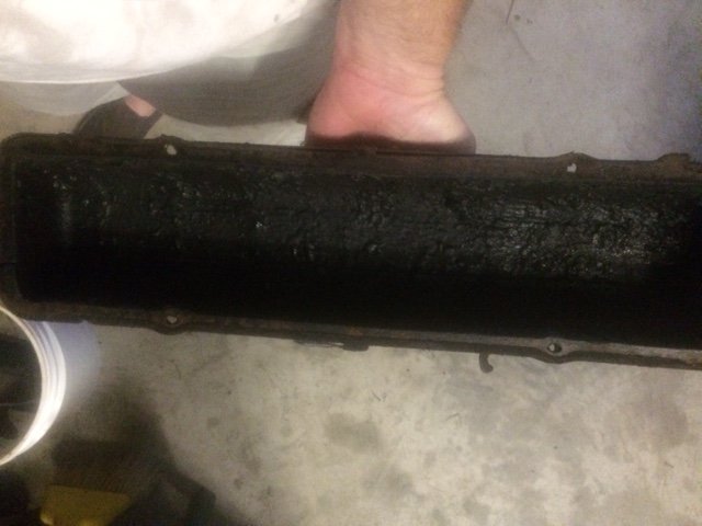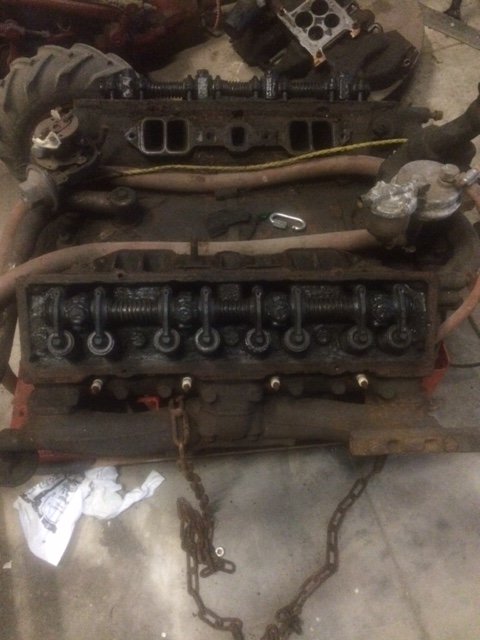 I couldn't resist. I know I don't have time to mess with it, but I wanted to look and see what was lurking under the intake and valve covers. Looks like the intake is cracked in the usual places. Looks like this thing shouldn't have any rust, it is all covered in 2" of old greasy oil byproduct.