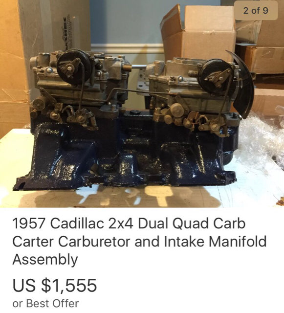 All high choke wcfb cores seem to have gone up a lot in price, early rochesters are still DIRT cheap, I picked one up at a swap last year for $10. I haven't looked at Cad, but I picked up a nice offy 2x4 for olds rocket last year for around $200, offy stuff is generally cheaper than vintage edelbrock, weiand, edmunds or Detroit Speed. cad stuff does seem to be more expensive than olds lately.