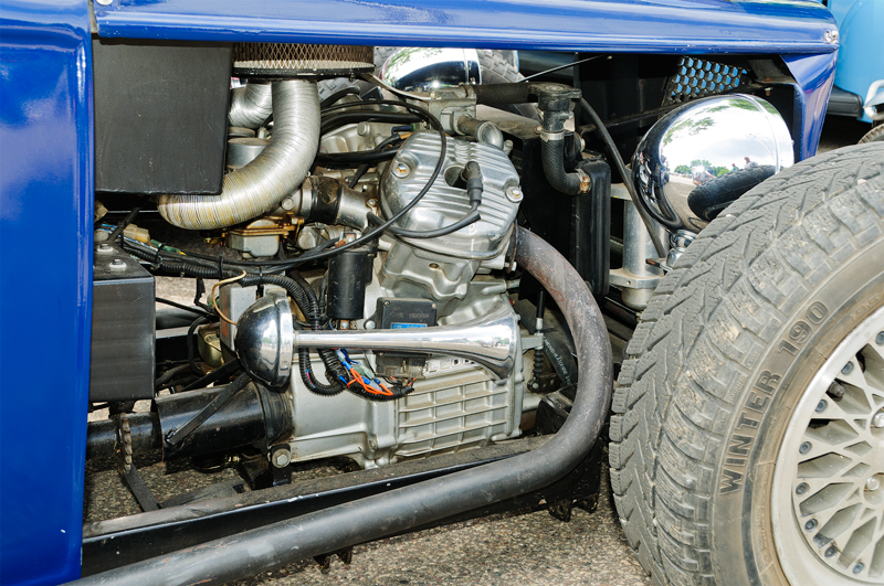 It seems appropriate, too, given that the 45 cubic inch engine is basically cyclecar sized anyway. The motorcycle-powered Ts never make much sense to me - going from ~170 cubic inches down to less than half that bugs me, even if it is a step up in power (yes, I feel the same way about late-model automobile four bangers). -Dave