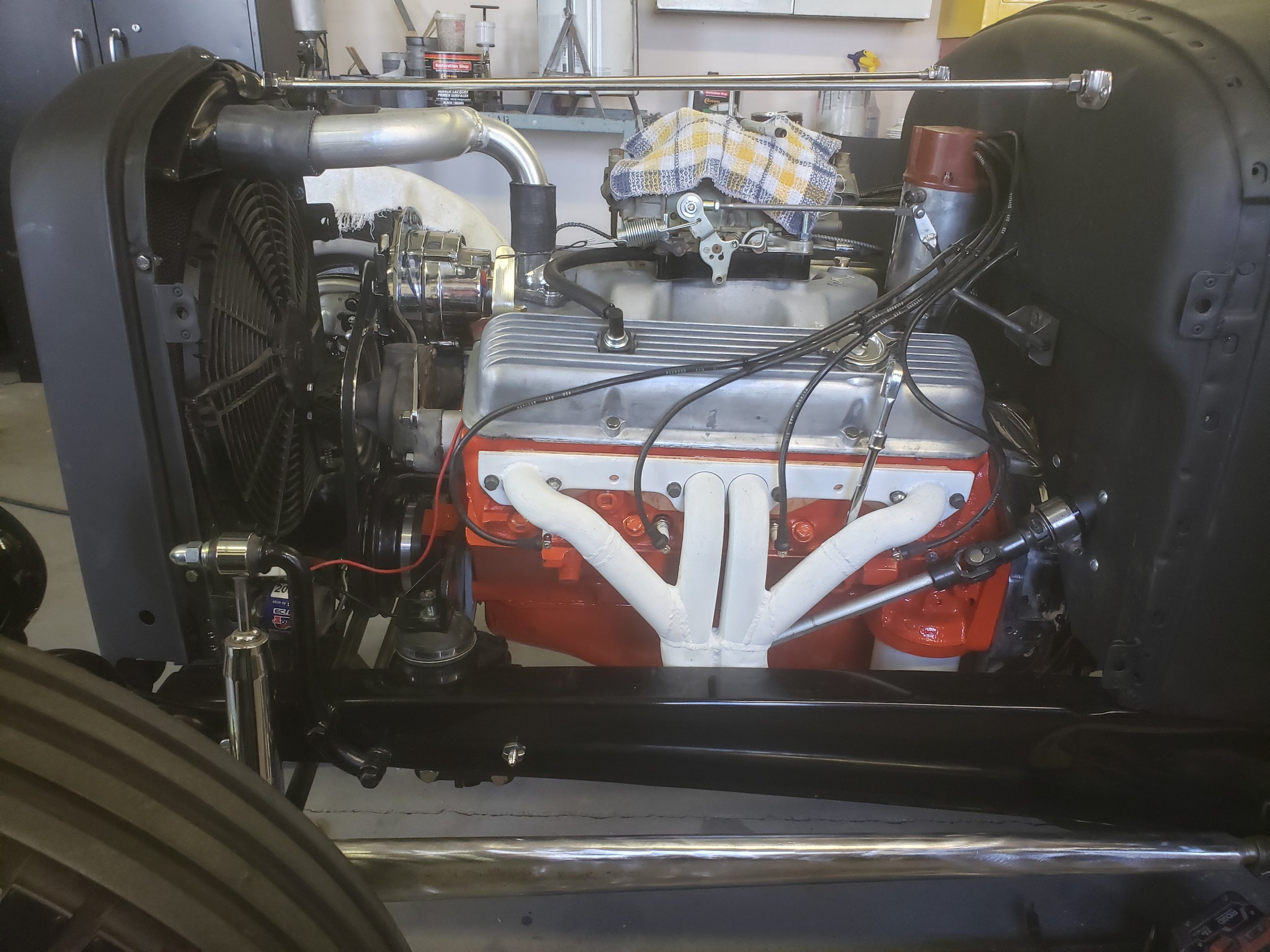 Thanks, I had to make a new upper coolant pipe. The first one only fit the 2×4 intake. That motor wasn't going to be ready in time. Just need to make battery cables, go through the carburetor and run fuel line.