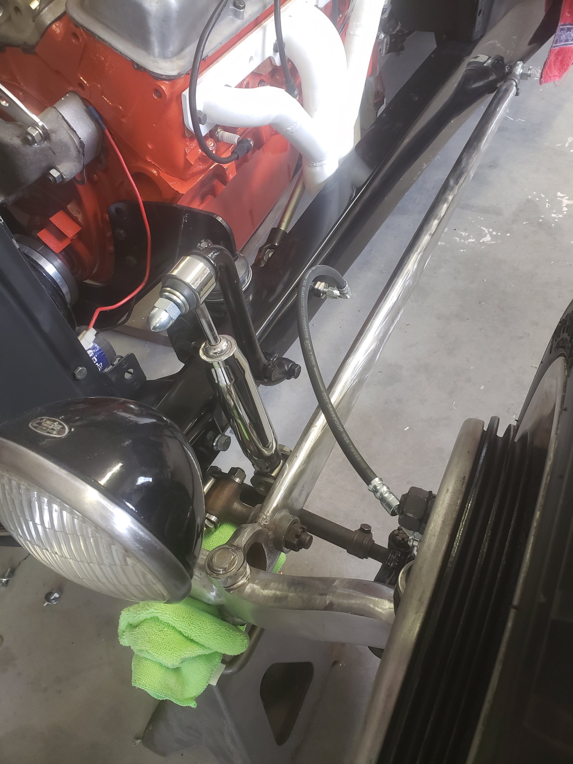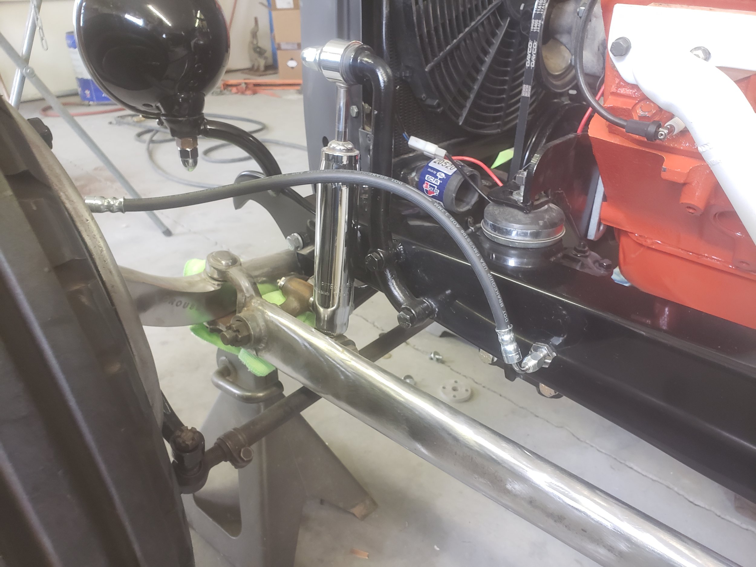 Every car has a story. For me, every part on this car has a story. Some I will share and some I won't. However, the motor has an interesting story. I was having issues getting parts for my original motor, so Dad says, "take this motor and freshen it up till you get your parts. It will require good gas because it has a lot of compression. " He informed me that he bought this motor brand new in 1969 and put it in his 1960 corvette. I ran the numbers on the engine and it is a factory DZ 302. I am running the Duntov 30/30 cam, Edelbrock C4B and Holley carb that he ran. I added the mag and Packard 440 wire, but it is all about the same. Can't wait to here this run. Finally got the brake hoses made the way I wanted them.