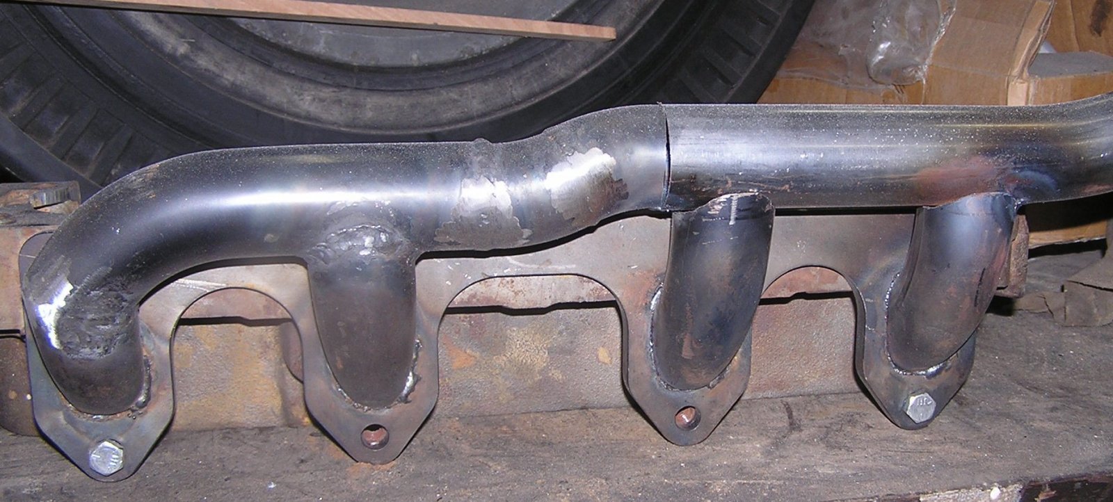 Mig welding exhaust pipe generally means lot's of blow through and whiskers inside the pipe at each joint. This leads to hot spots and early burn out just at the welds on the top edge. Not Good! I often pressure test each tube before final assembly just for my own peace of mind.