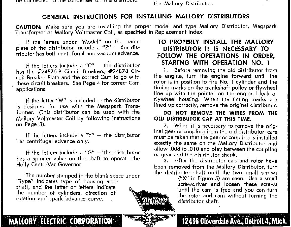 I’m bringing this old thread back up to see if there is any new info. I picked up a Mallory flat cap distributor for my 283. At least I hope I can run it. Its a ZC 310-HP G. Everything seems good, except I’m trying to find out what the “G” suffix means. Supposedly it has to do with advance curve. Is there any new info that has come to light on this. I don’t see the G suffix listed in any of the Mallory documents attached to this thread. Just trying to figure out what I have and whether I can use it.