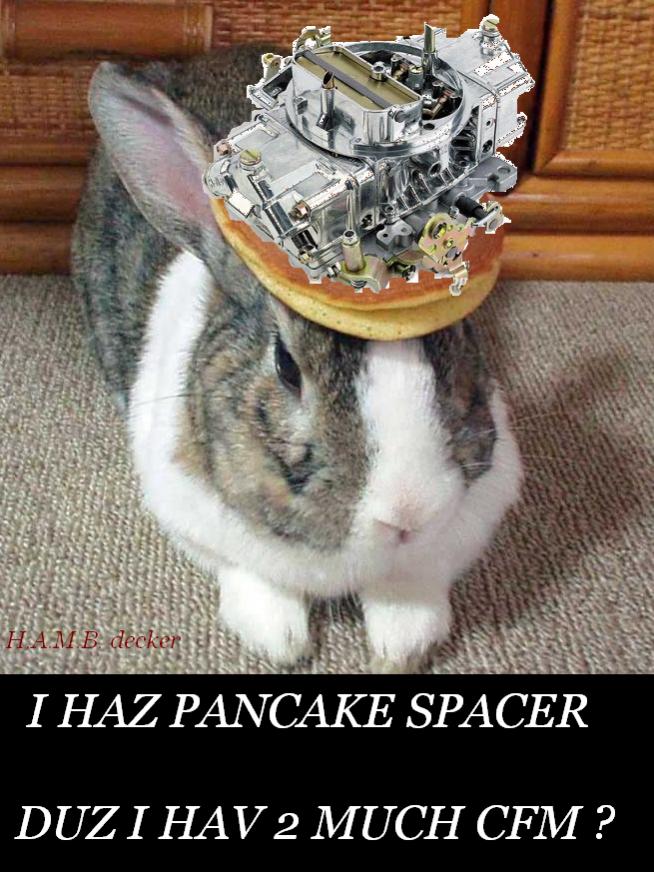 HAAAA....amen, brother. I started this thread forever ago and it continues to hobble down the dirt road, veering this way and that, but never really answering the original question in depth. I have since installed the 500 cfm Carter and it started well and ran nice once I adjusted the idle to about 500rpm. Then, smoke out from behind the external voltage regulator and KERPUT!......will sputter on start and quickly die. Have no idea if it's the regulator or the carb...considering buying new ones of both. EXCEPT this time I'm thinking of getting a 390cfm 4bbl. Guy at the rod shop said that for a bone stock engine you can multiply the cubic inches by 1.25 as a general rule for CFM on your carb. Have no idea if that's legit.