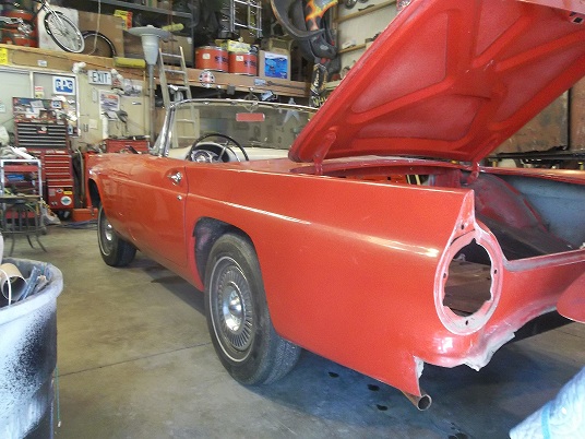 Looks good. I cut up a '55 a couple years ago and I still have a smashed front fender (don't remember which side) and a bunch of inner fender pieces if you're looking for anything. I have one good hood yet, too. T-bird sheetmetal is insanely hard to find, for as popular of a car that it is.