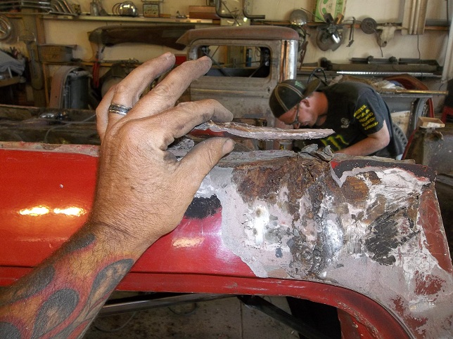 24. Here's one of the quarter repairs after hammer and file work. This is the reason I push O/A welding! I don't know exactly how long I spent on this, but it finished out quickly.