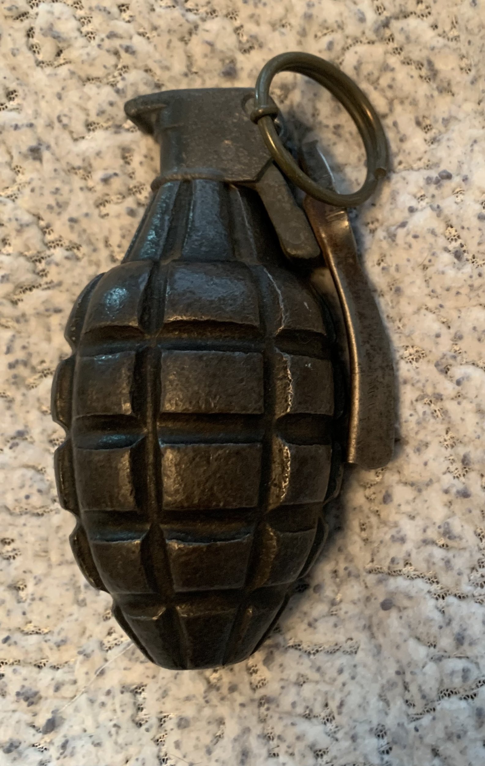 Have a bayonet, I think German WWII. I was with my mother when she was cleaning, sorting things at my grandmother’s house after she passed. We were talking and she reaches up on top of the corner cabinet and pulls down the bayonet- apparently was found in one of the corn cribs after they bought the farm in ‘62. Everything but the blade was rusty, I sandblasted, painted, and made some handles to clean it up years ago .., Have what I think is WWI era grenade that my dad had. And my grandfather’s service ribbons from the army - served at the end of pacific theatre campaign.