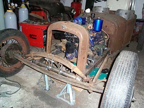 Thanks guys, just getting this far has been fun. OK, I'll keep the "tank". I gotta make it do something, I'm not much for fake shit. Even if it's just a over flow tank for the rad. Kinda wish I still drank, I'd just keep beer in it The plan so far is channeled, axle in front of the grille, and the spring behind. I wanna mount the spring to the bones, and have come up with a mount idea that should let me mount them far enough back. The spring on top of the suicide mount sounds like a good idea. That would make it easy to drop it more later if I want to. (I usally do). I was thinkin I could have the mount for the tank come off the spring perch, thru the grille to the tank. That sound workable? I still have to get a spring for the front, and figure out the brakes/spindles, and the steering, and then I should be ready to build the frame. It'll be my first full chassis fab, but I think I'm up for it. I think I know a place I can ask some questions if I get stuck!