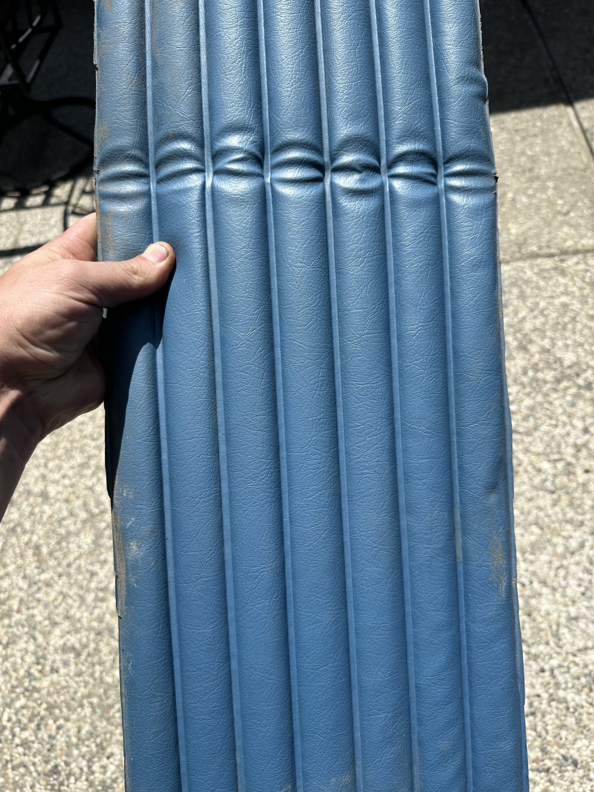I can mail you some blue vinyl swatches, if anything matches, we can make you some pleated panels and ship em to ya.
