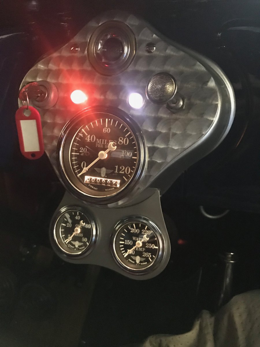 This was a period accessory - rare and expensive today. I think there were repops sometime in the 60s. Look at the Model A parts suppliers they have 1 and 2 gauge panels that fit under the stock dash. They all use 2" gauges. There are 1 1/2" gauges available that I think would look better in the small A interior. This is the single mount - basically just a strap that holds the gauge and uses the bottom 2 dash screws. The SW wing gauges look period correct.