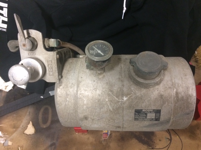 As the above previous post explained, our Moon Tank was placed inside of the cab in front of the passenger seat. This was a common thing in most race cars. The pump was handy for the driver, as well as the shut off valve.