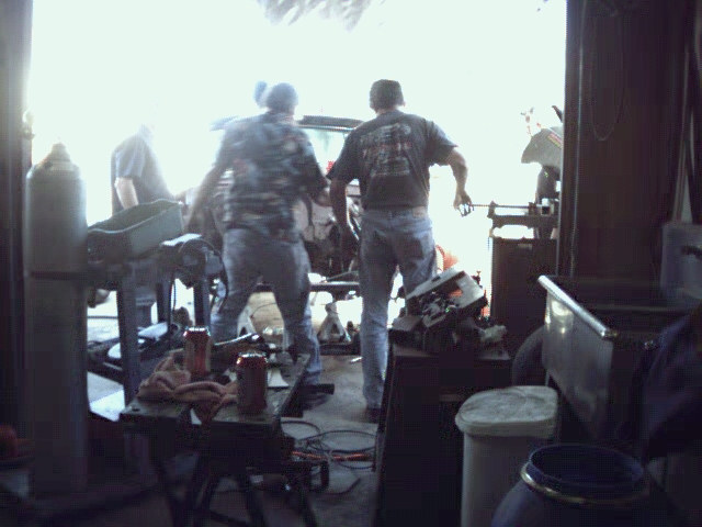 nice of fred sandford to let cha use his place to work on the car . Looks like alot got done and fun was had by all !