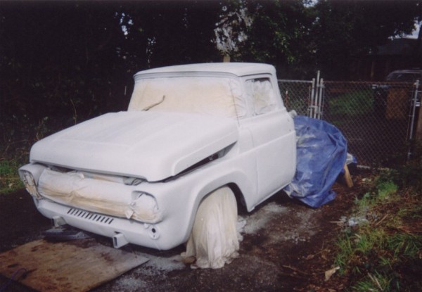 This was right before Christmas, finding out my air compressor wasn't cuttin' it... so I ended up rubbin' out the etching primer last month (thankfully the whole truck wasn't covered, but even half the truck took too long).