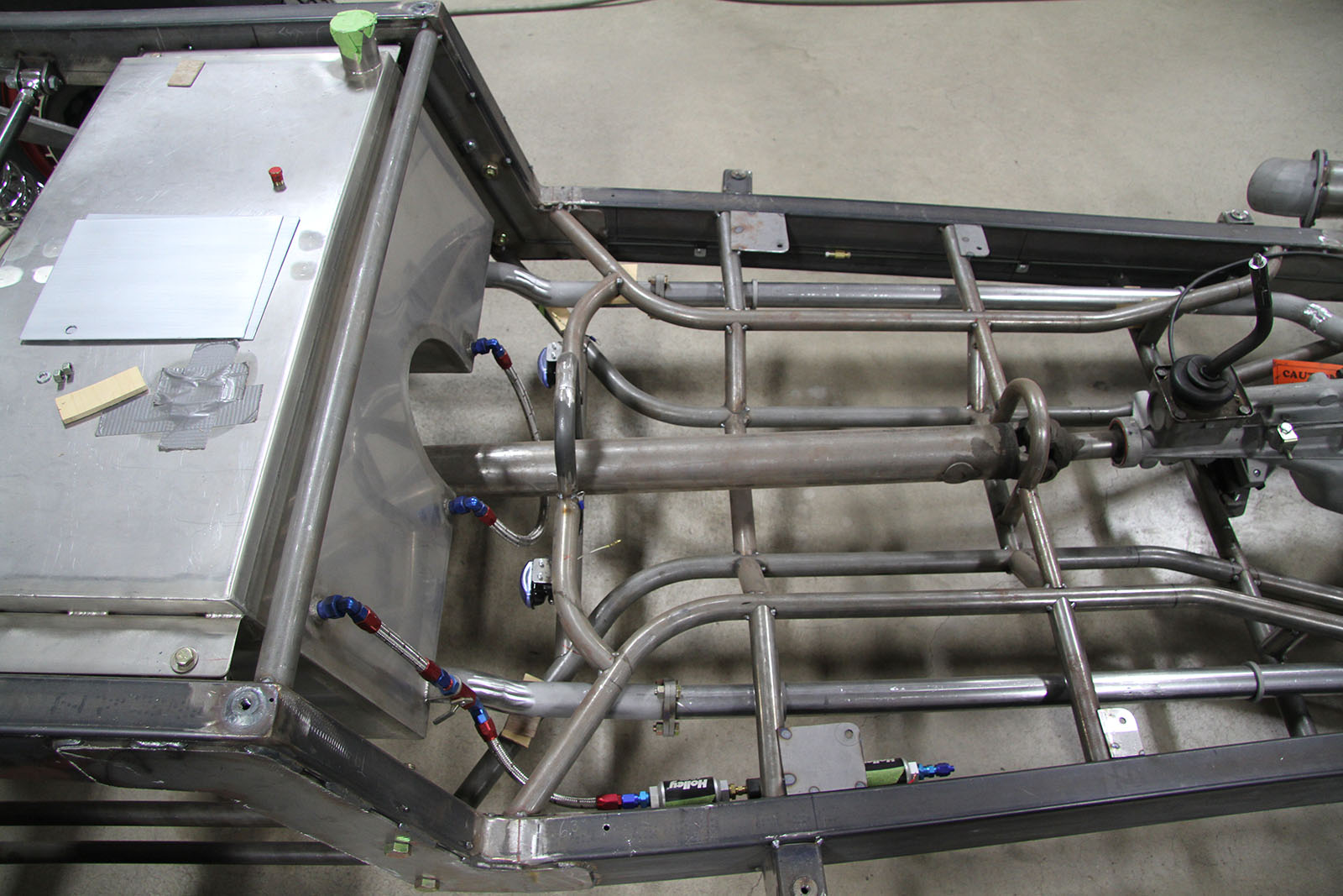 The floor is nearly finished too. You can see the cutout for the shifter and the emergency brake. The roof supports have been added to smooth out the roof from the extension.