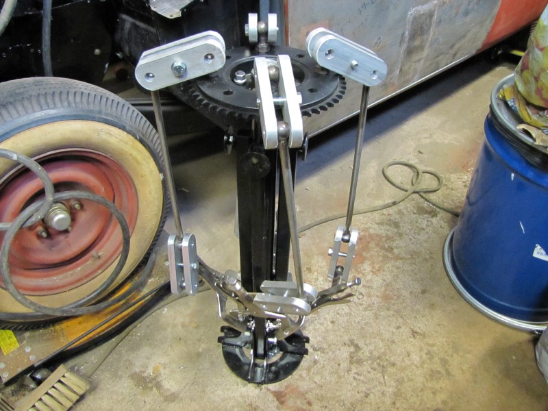This isnt exactly a project update, but i borrowed a hacked up Harley frame piece from a friend of mine and did a Harley frame adapter for the stand too. I guess that will be handy at some point. Its not a frame jig, but it will make welding tabs or other stuff a bit easier job.