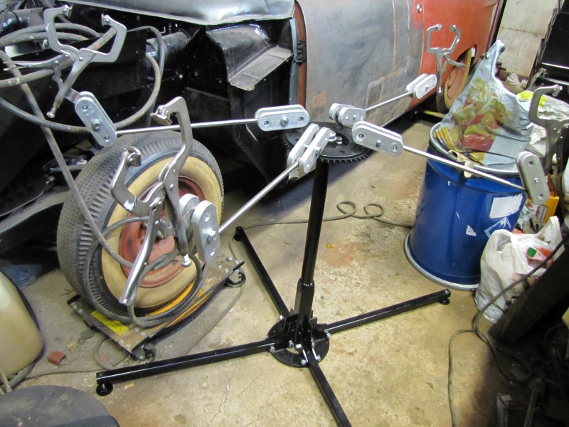 Its been a really long time since i've updated this thread. The last year was kind of quiet with the build. Mostly because some personal shite i had, but looks like there's some light again at the end of the tunnel. I've been thinking about making a somekind of adjustable and rotating body panel stand, where i can mount fenders, doors, trunk lids etc. So i made this one: